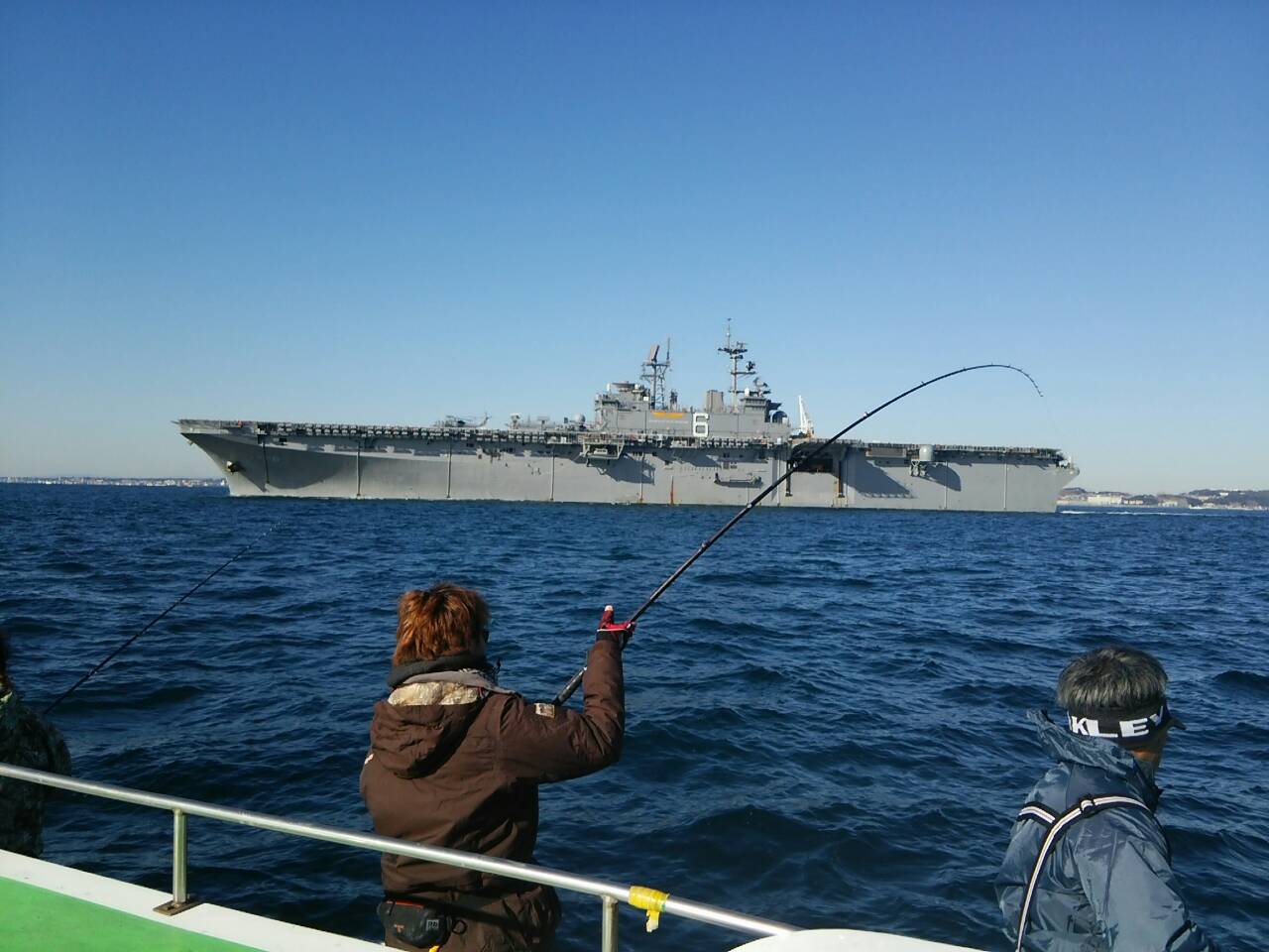 素敵なヘリ空母(米軍)が通過、思わず見とれてしました♪