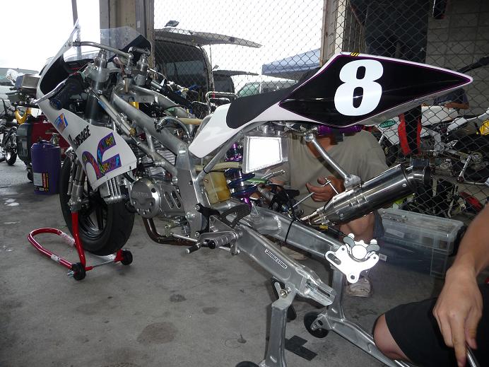出発前夜、尾林ファクトリーにてほぼ徹夜でマシンを整備しまして^^;;