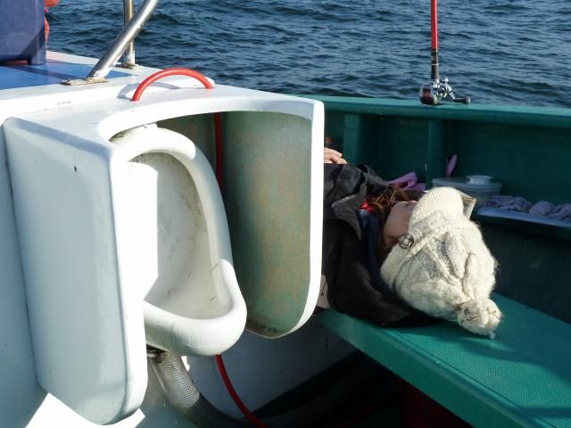 イカをゲッソゲソと釣り上げる輩と、船酔いでorz な人と