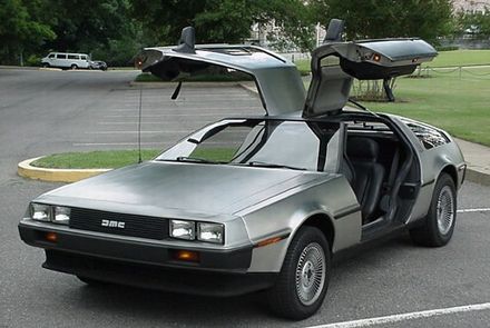 デロリアンね~。あ、ほんとだ。無塗装ステンレスだって。やっぱ一番目を引いたのはガルウィングですなw
