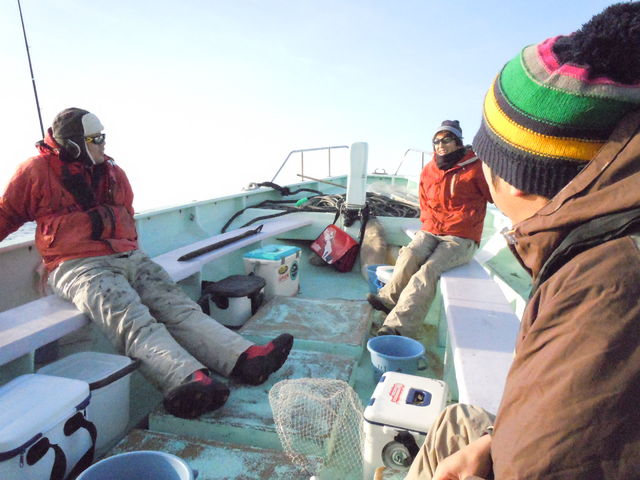 ご新規さん達にシャコ付けレクチャーをしてから乗船です(船の上だと酔ちゃうからねww